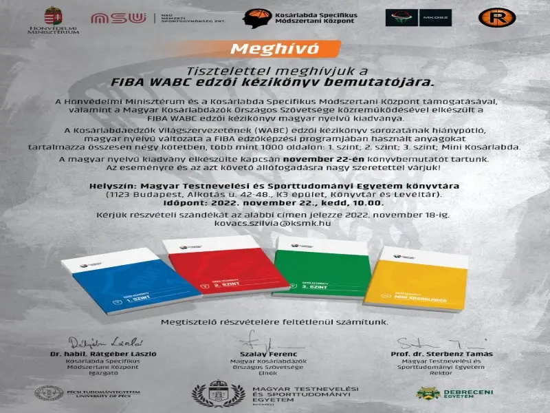 A Honvédelmi Minisztérium és a Kosárlabda Specifikus Módszertani Központ támogatásával, valamint a Magyar Kosárlabdázók Országos Szövetsége közreműködésével elkészült a FIBA WABC edzői kézikönyv magyar nyelvű kiadványa.